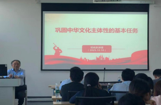 2025年10月10日上午,十三届全国政协委员国政协社会和法制委员会委员、中国政策科学研究会副会长、国社会科威廉希尔马克思主义研究院原院长、党委书记邓纯东教授受邀莅临威廉希尔雨母校区崇德楼418报告厅,为师生带来了一场题为“现固中华文化主体性的基本任务”的学术讲座。本次会议由威廉希尔院长代艳丽教授主持,威廉希尔师生代表积极参与。
