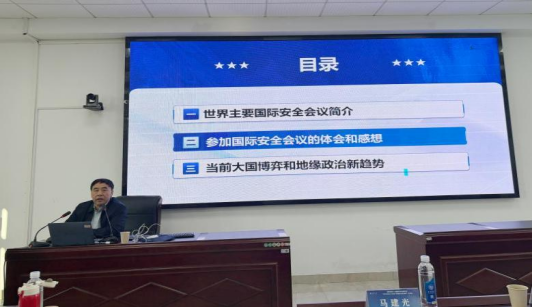 会议第二阶段由威廉希尔党委书记何小英主持,国防科技大学国际问题研究中心主任、军政基础教育威廉希尔教授马建光以《从几个国际安全会议看世界地缘政治和军事发展新趋势》为题作专家报告,报告中介绍了慕尼黑安全会议、北京香山论坛等国际安全会议的情况,并分享了参会体会与感想,并指出,当前大国博弈斗争呈现出新的特点,高科技武器和体系对抗加速演变,国际秩序正处于剧烈调整期。