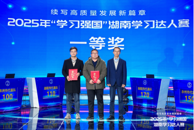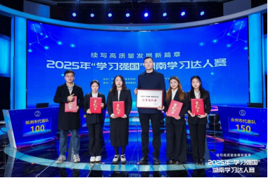 12月18日上午,以“续写高质量发展新篇章”为主题的2025年“学习强国”湖南学习达人赛决赛在长沙举行。经过多轮激烈角逐,由我院汤琰老师指导,薪火师生宣讲团马院成员丁钰姣、秦敏、刘晨曦、刘雨轩四位同学组成的衡阳市代表队在决赛中以总分170分、全场第一的优异成绩拔得头筹,荣获一等奖。